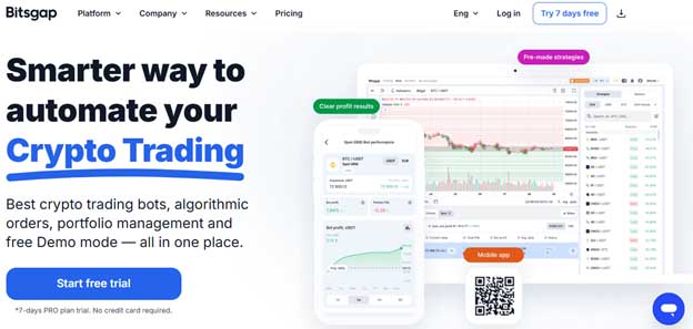 Bitgap is one of the best crypto arbitrage trading bots when it comes to offering features to its customers. The crypto bot offers a visually appealing user interface, which makes it easier for novice and pro traders to benefit from it equally. The platform benefits from its built-in AI assistant in arbitrage trading, as the AI bot can increase the profits by 20%.