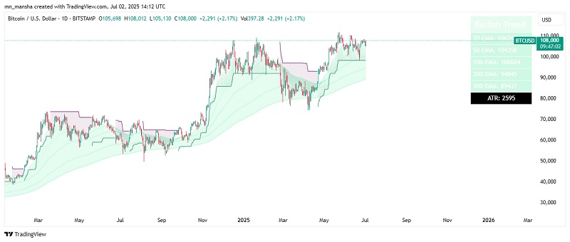 The fear of a sudden Bitcoin collapse often feels tangible, especially when charts flash red and commentators point to lower “liquidity areas.” First, Bitcoin sits comfortably above its 20-, 50-, even 100-day EMAs (106 k, 104 k, 100 k respectively), all pointing upward in unison, so far so good. That ribbon of moving averages acts like local support here.