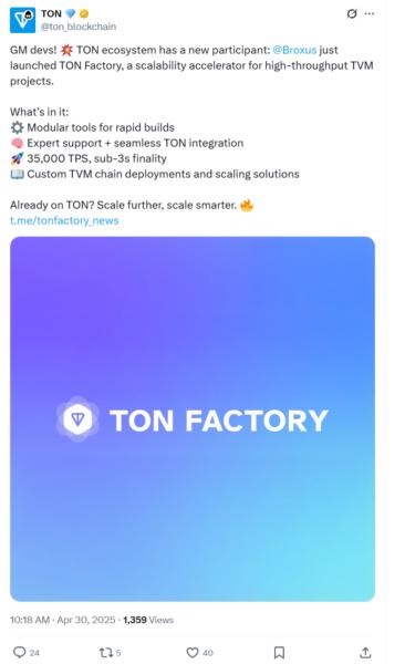 The launch was announced via a Telegram post on April 30, where the project team described TON Factory as a modular, developer-oriented framework designed to streamline the creation and deployment of performance-driven projects on the TON blockchain. The announcement emphasized that the platform caters not only to new developers but also to experienced builders already active in the TON ecosystem who are looking to scale their solutions more efficiently.
