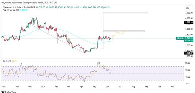 Ethereum ranked second in cryptocurrencies, has a market cap of $307 billion. Currently trading at $2540, it has a total supply and circulating supply of 172 million ETH coins. Though the max supply of Ethereum is unlimited, the newly mined Ethereum tokens were limited through a burn mechanism to control the supply and keep the demand.
