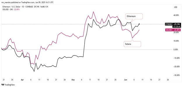 Though both coins are highly volatile, Solana showed more short-term fluctuations. As of June 2025, both coins are on their bullish trajectory as the price recovers after Trump’s tariffs affect the crypto market. Overall, in this Ethereum vs. Solana comparison, Ethereum leads as an asset with more potential to grow in the coming months, as it has stronger investor momentum. However, their individual performance depends on the on-chain activity, project partnerships, and social sentiments.